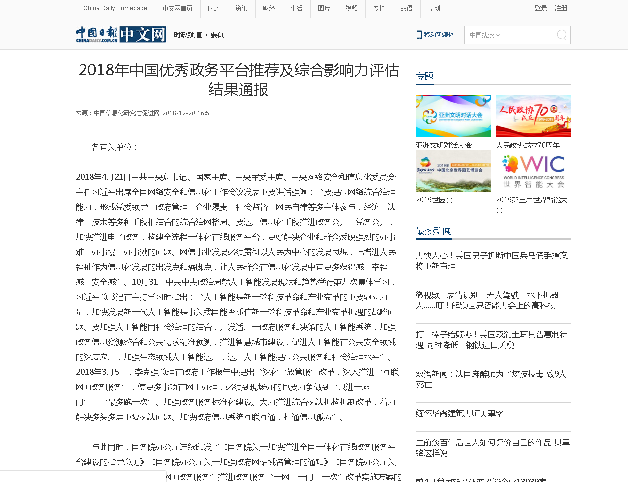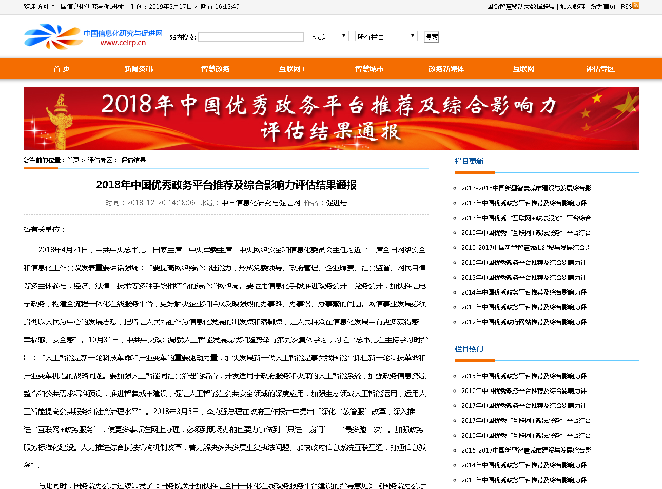 2019年4月2日第四屆(2019)中國智慧政府發(fā)展論壇;第十七屆(2019)中國優(yōu)秀政務(wù)平臺推薦及綜合影響力評估總大會暨“互聯(lián)網(wǎng)+政務(wù)服務(wù)”“互聯(lián)網(wǎng)+政法服務(wù)”雙智峰會,在“一帶一路”和長江經(jīng)濟(jì)帶重要聯(lián)結(jié)點重慶市勝利召開。本次會議以“智慧政府引領(lǐng)創(chuàng)新時代、智能科技創(chuàng)造數(shù)字未來”為主題,為來自中央國家機(jī)關(guān)及各級地方黨委、政府、政法等單位的幾百名信息化分管領(lǐng)導(dǎo)及負(fù)責(zé)同志們提供了一個開拓思路、暢想未來的分享交流平臺。中國信息化研究與促進(jìn)網(wǎng)總編、中國優(yōu)秀政務(wù)平臺推薦及綜合影響力評估組執(zhí)行組長、國衡智慧移動大數(shù)據(jù)聯(lián)盟秘書長曾勇向大會做了"樹立和堅持正確的互聯(lián)網(wǎng)發(fā)展觀 ”專題演講,全面系統(tǒng)的解讀和闡述如何樹立和堅持與歷史同步伐、與時代共命運(yùn)的世界觀、人生觀與價值觀的思想感染了此次參會領(lǐng)導(dǎo)、嘉賓和全體代表!