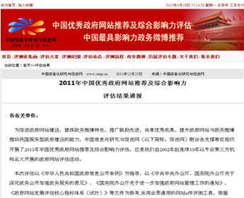 中國信息化研究與促進網(wǎng):2011年中國政府網(wǎng)站推薦及綜合影響力評估結(jié)果
