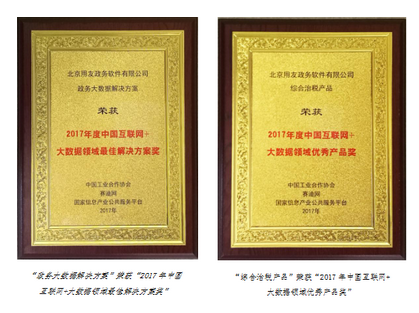 憑借多年在政府業(yè)務系統(tǒng)設計建設過程中積累的豐富經(jīng)驗,以及在大數(shù)據(jù)基礎上的持續(xù)創(chuàng)新和努力,北京用友政務軟件有限公司在此次大會上將2017年中國互聯(lián)網(wǎng)+大數(shù)據(jù)領域兩項大獎收入囊中。