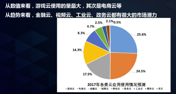 值得注意的是,在云服務(wù)領(lǐng)域中,互聯(lián)網(wǎng)企業(yè)的使用率最高。其中以電商、游戲、金融、視頻和手機(jī)企業(yè)為主。