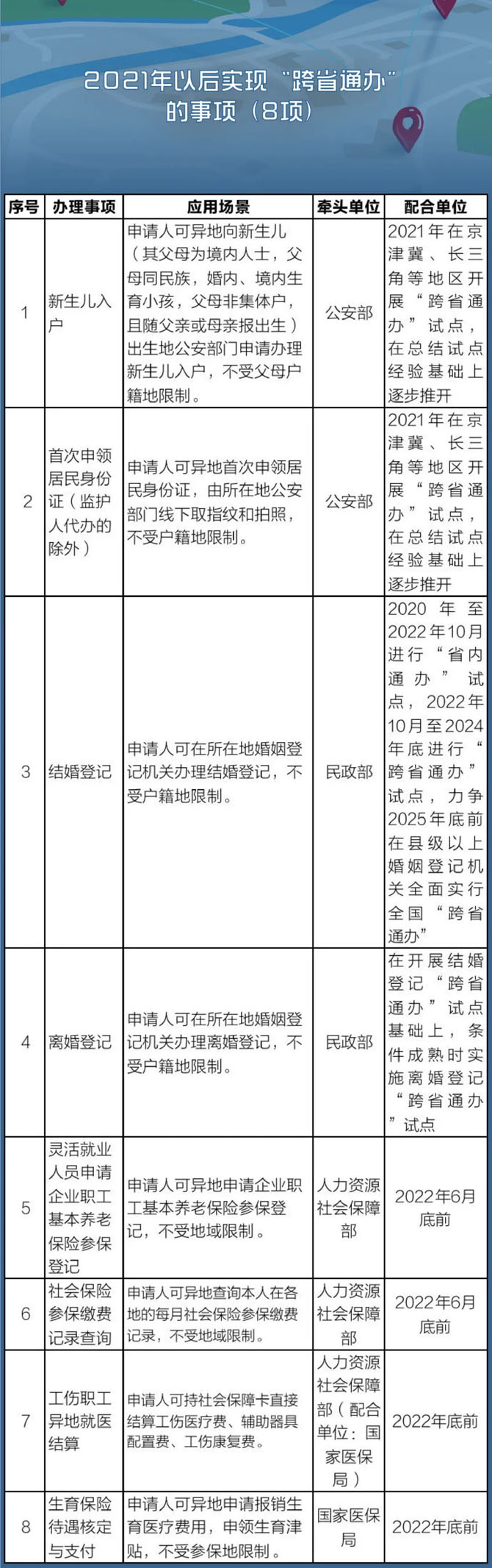 日前,國務(wù)院辦公廳印發(fā)《關(guān)于加快推進(jìn)政務(wù)服務(wù)“跨省通辦”的指導(dǎo)意見》,對(duì)140項(xiàng)高頻政務(wù)服務(wù)事項(xiàng)“跨省通辦”給出具體時(shí)間表、路線圖,一起來看!